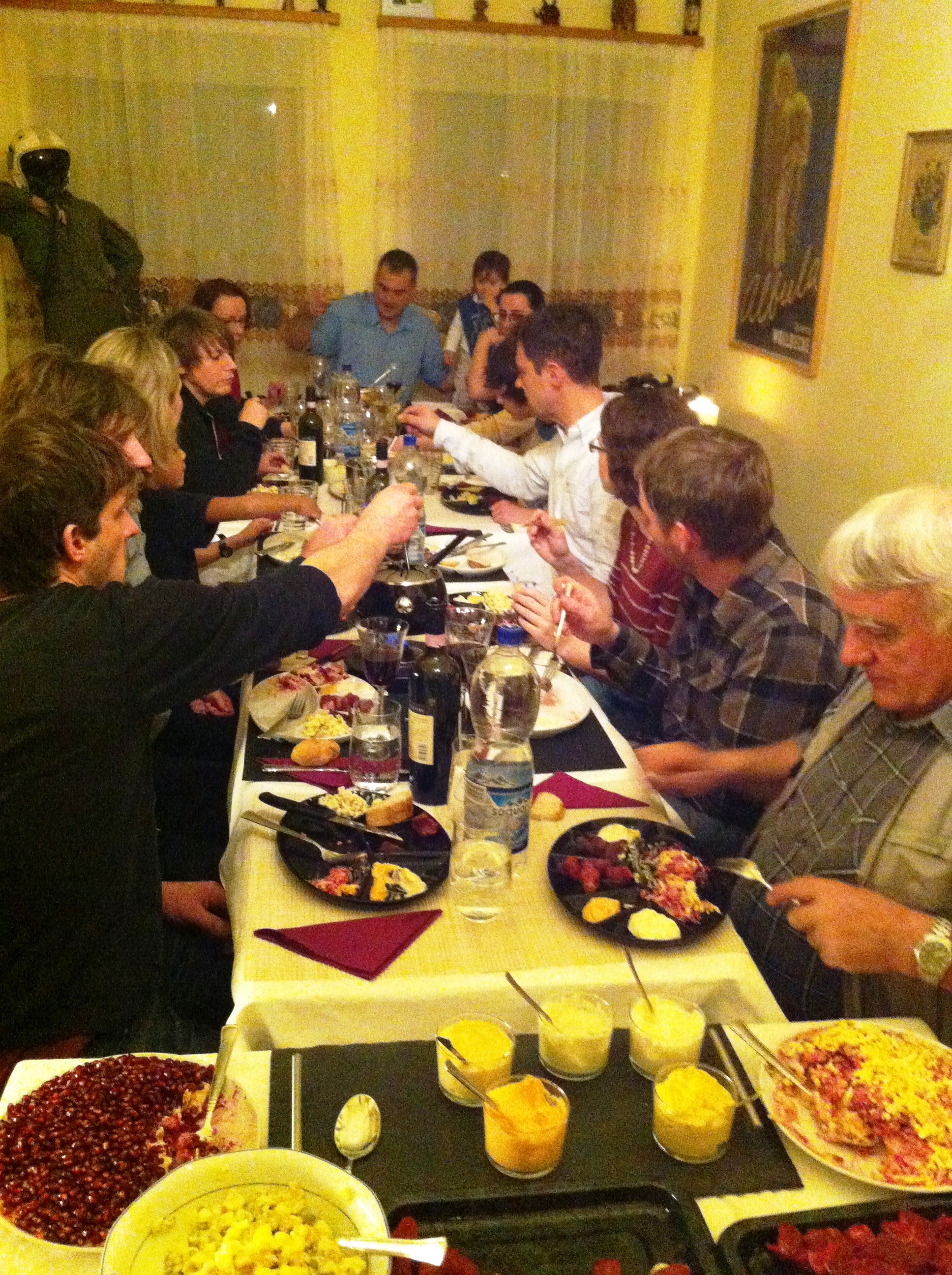 Regina und Sandro haben zum Festessen geladen. Das ganze Team ist mit Anhang angereist und lässt es sich gut gehen!